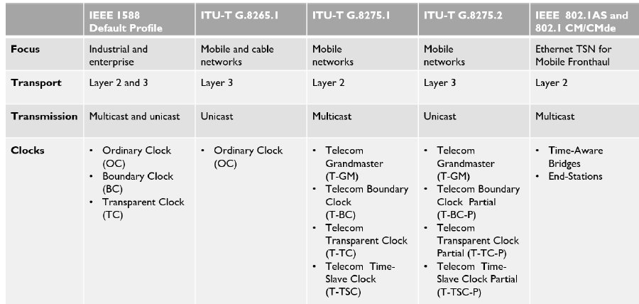 ITU-T has defined three PTP profiles for telecom applications described in specifications G.8265.1, G.8275.1 and G.8275.2: