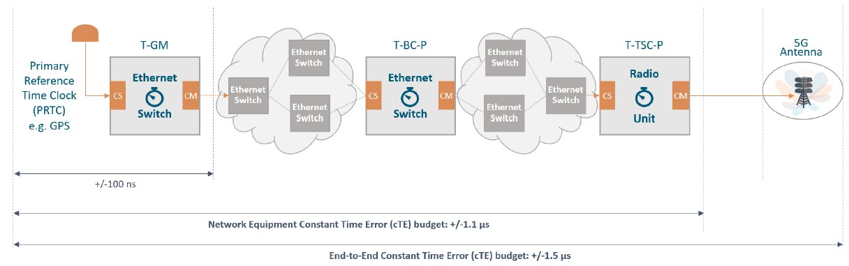 For 5G networks based on Time Division Duplex (TDD), G.8275.1 is the recommended profile to be used, but requires that all switching nodes in the network can operate as PTP Telecom Boundary Clocks (T-BCs). This means that each device has to support its own high-performance oscillator (e.g.an OXCO) and timing logic that will allow the termination and regeneration of PTP packets. It also means that each device must support Synchronous Ethernet or a similar physical layer frequency synchronization input that can meet requirements. Tests have shown that it is very difficult to meet end-to-end time error requirements without a physical layer synchronization input.1
