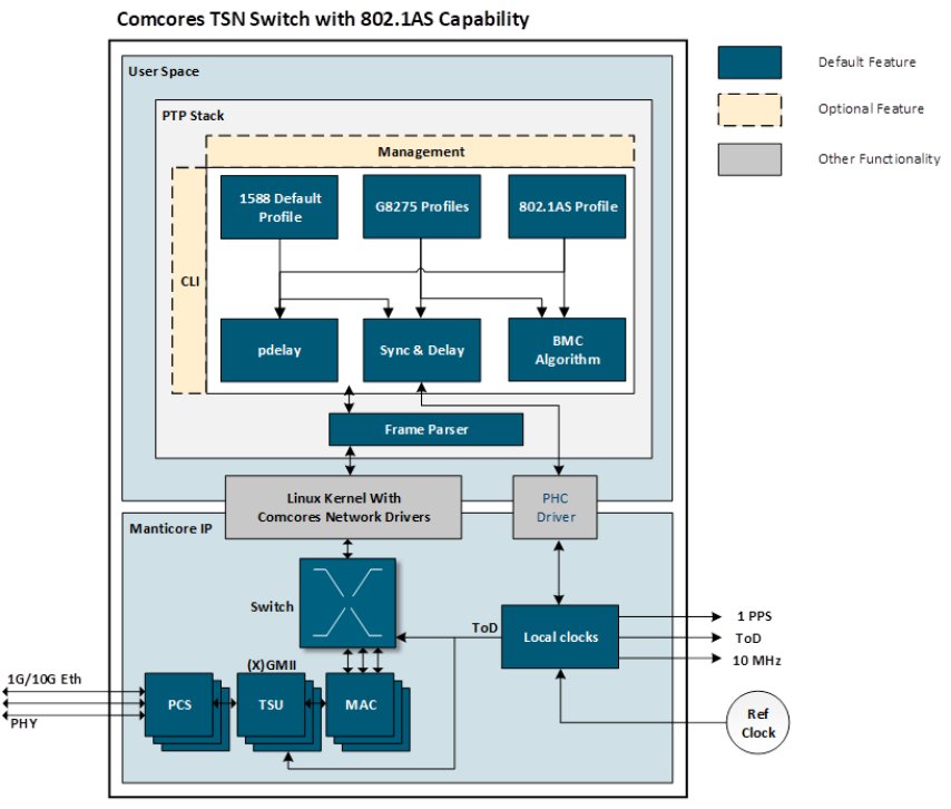 Point-to-point latency is automatically calculated and the solution also provides programmable eMAC and PHY ingress and egress latency compensation. The IP is pre-integrated with Comcores´ own MAC as well as with Intel and Xilinx Ethernet MAC cores and can be easily integrated with other MAC/PCS implementations. To enable customer-friendly implementation, a PTP hardware sub-system implementation is provided by Comcores that includes pre-integrated MAC, PCS and DMA IP as well as supporting PTP software.