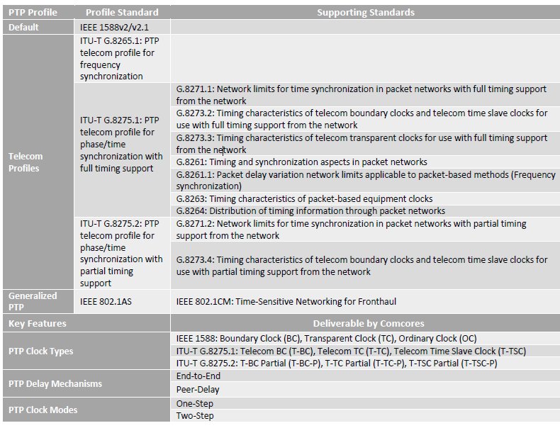 Table 1: PTP Profile implementations that can be delivered by Comcores