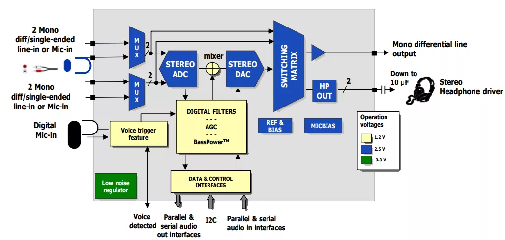 Furthermore, fabless makers have the insurance to benefit from the best audio quality at system-level thanks to the unique features embedded with the CODEC for its best resilience to the various noise sources.