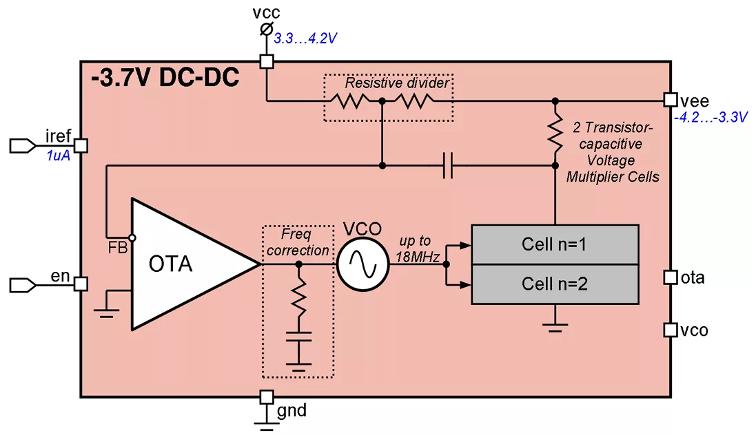 3.3 - 4.2V to -3.7V step-down DC/DC converter