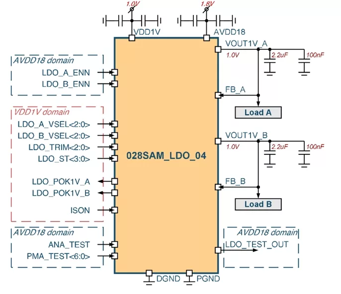 028SAM_LDO_04 is external-capacitor-based Linear Regulator in Samsung 28 FD-SOI to generate SoC voltage supply voltage.