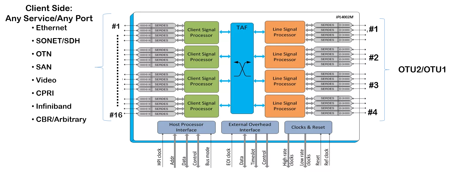 The Apodis IPL4002M OTN processors ASICs are a member of Tera-Pass’ product family for access applications.