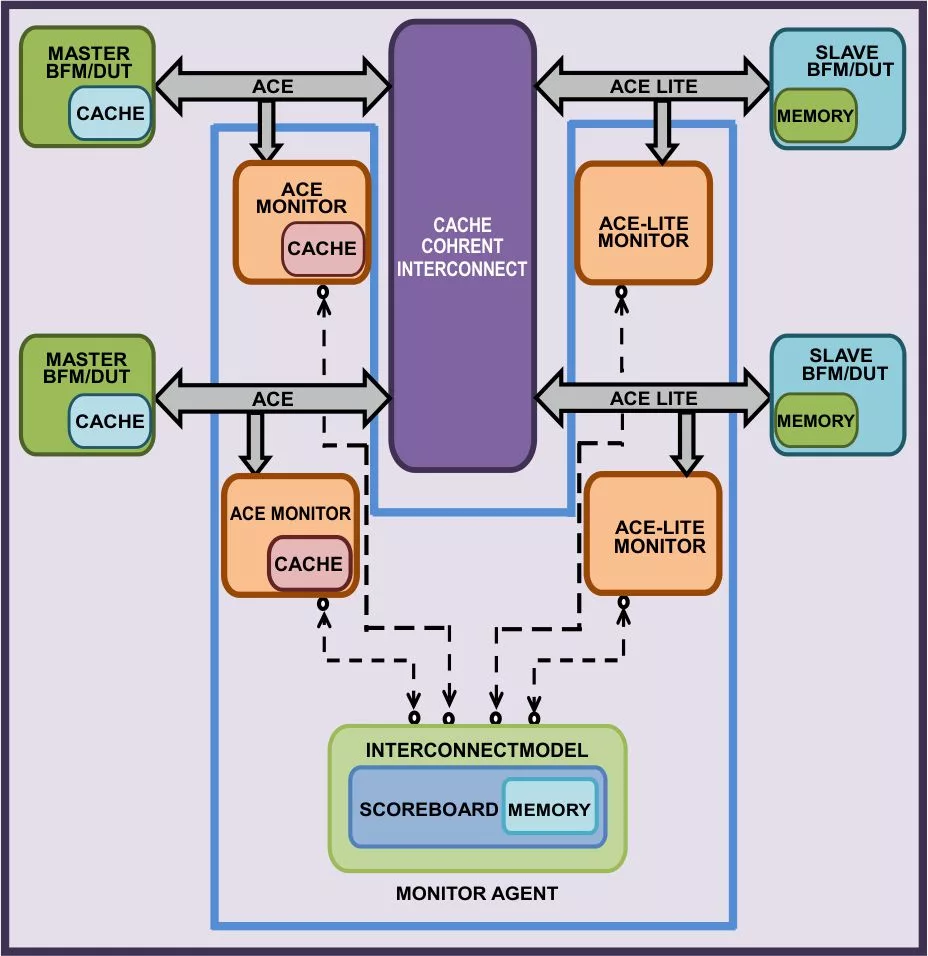 - Interconnect model ensures that the interaction between all bus components is correct and follows the ACE protocol.