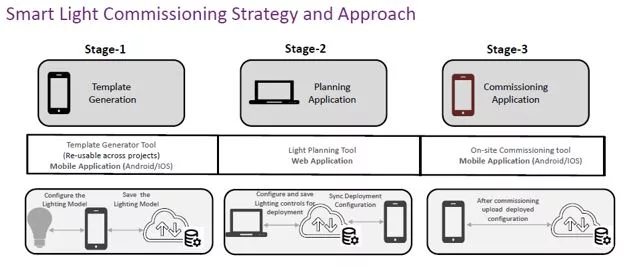 Our native Android and iOS mobile commissioning and provisioning application for Bluetooth Mesh network allows our customers to provision any luminaire, sensor and gateway that is complaint with Bluetooth Mesh standard. Our application enables building contractors, owners and facility managers to easily add and control lights in a Mesh network.