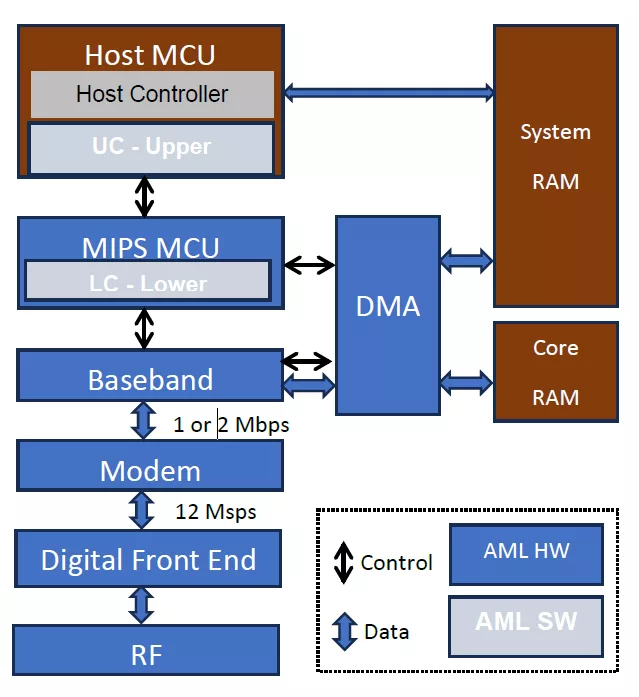 The BLE v6.0 Subsystem IP consists of an integrated Controller and Modem paired to a proprietary RF on T22 ULL.