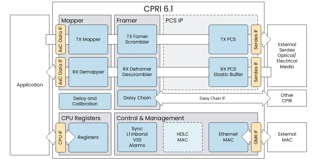 Well established, field proven and silicon agnostic IP core conforming to CPRI 6.1 specifications