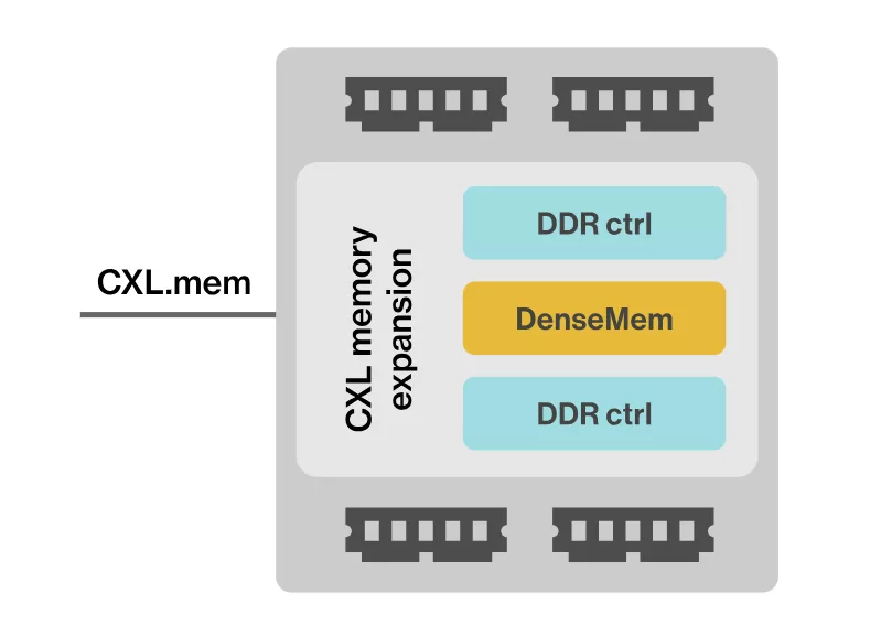 Data Center operators at scale regularly employ software memory compression to create an additional memory tier to conserve capacity and interconnect bandwidth. Such operations consume monetizable host node compute cycles. DenseMem offloads compression/ decompression , tranparently creating a new, dynamically adjusting compressed memory tier within the Type 3 Device. DenseMem free up host cycles to service end user workloads. DenseMem supports industry standard compression algorithms for compatibility/ interoperability and alternatively offers propreitary compression algorithms for highest performance. DenseMem AI features adapt performance by adjusting to workloads automatically.