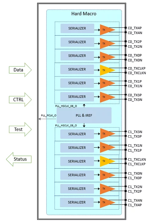 - to support DPHY TX @ 2.5Gbps (4 data lanes + 1 clock lane)