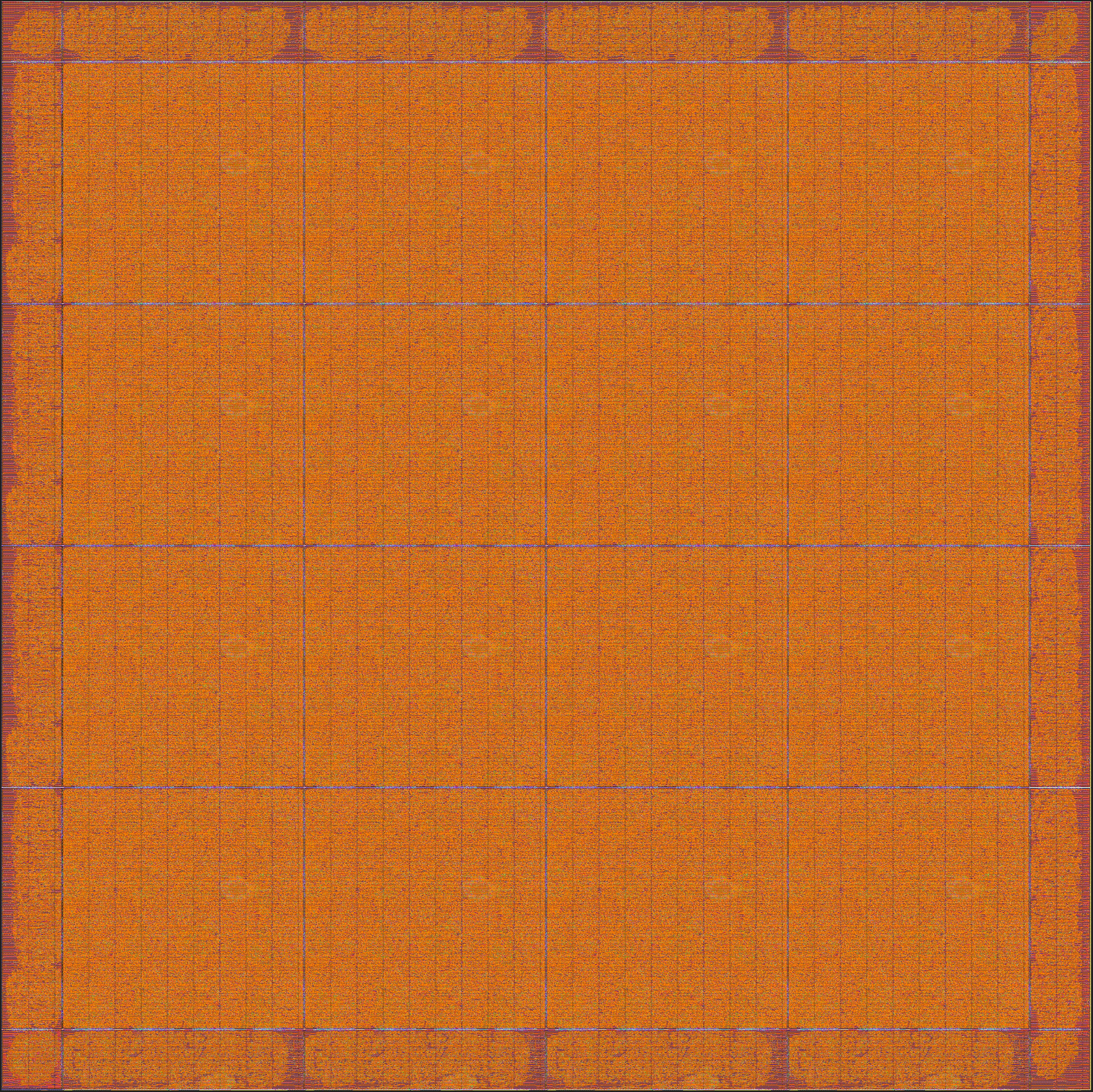 The Z1000 standard eFPGA architecture has been ported to the GlobalFoundries GF12LP process. The picture below shows the full layout (GDS) of an integration ready Z1000 eFPGA core.