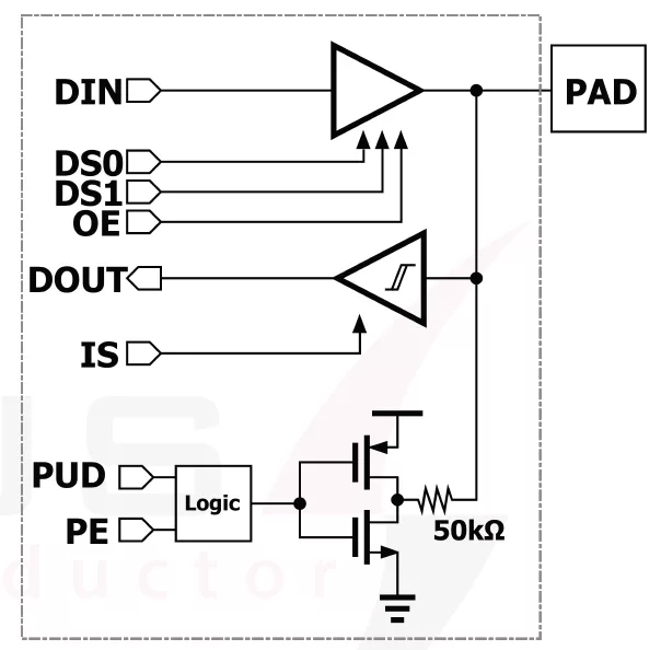 - Output enable, input hysteresis, pull-up/down control