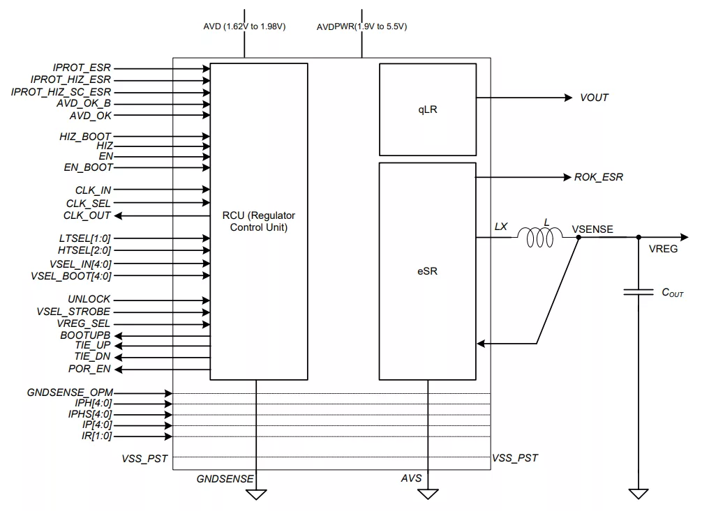 - Embedded RCU (Regulator Control Unit) to manage booting and mode transitions and to ensure data integrity