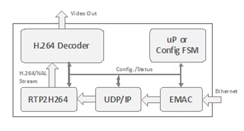The RTP2H264 core is available in RTL source or as a targeted FPGA netlist. Platforms integrating the core along H.264 decoder, UDP/IP, and eMAC cores, are also available from CAST, and can enable rapid development of video over IP systems.