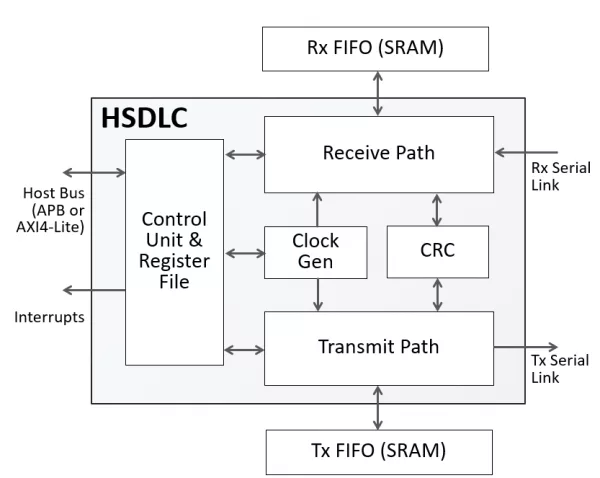 The HSDLC IP core implements a controller for the High-Level Data Link Control (HDLC) and the Synchronous Data Link Control (SDLC) protocols. It is based on the Intel® 8XC152 Global Serial Channel (GSC) working in SDLC mode, and adds features to support HDLC or proprietary frame transmission under host processor control.