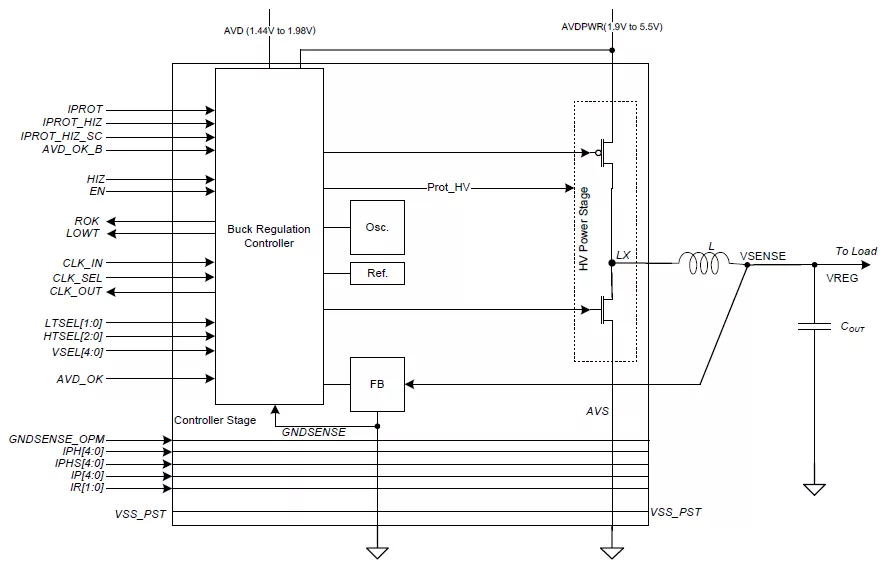 • High efficiency buck regulator (up to 95% peak), over wide load current range