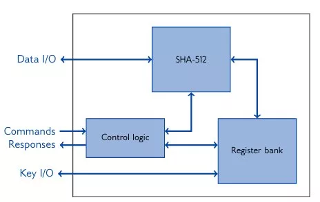- Versatility: IP3324B supports the widely used cryptographic hash function SHA-512. It also has native support for commonly used message authentication code (HMAC) based on SHA-512 and key derivation function (HKDF) based on HMAC. This allows using XIP3324B for multiple cryptographic functions —for example, TLS 1.3 —more easily and efficiently than an IP core that supports only SHA-512.