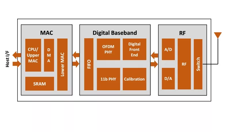 - Hard macro containing IEEE 802.11n radio, baseband and others