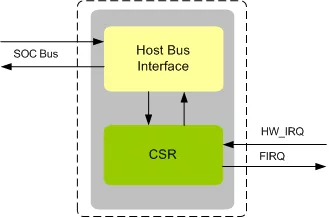 - Configurable number of interrupt sources (up to 31 IRQ,or sensitive (high, low) trigger source one fast IRQ)