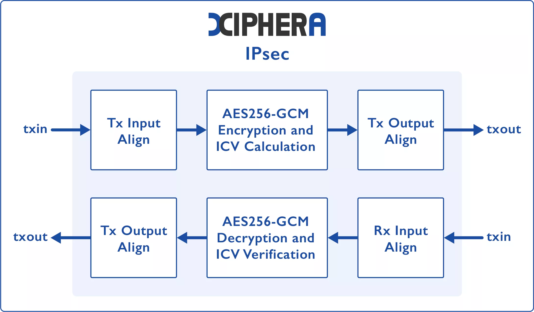 IPsec (Internet Protocol Security) is a widely implemented protocol to secure communications across the Internet. The IPsec core enhances secure communication at layer three (Network) of the OSI model, ensuring the authenticity and confidentiality of data traffic. It leverages the Advanced Encryption Standard (AES) in Galois Counter Mode (GCM) with a 256-bit key length, for Encapsulating Security Payload (ESP) frame processing within the IPsec protocol.