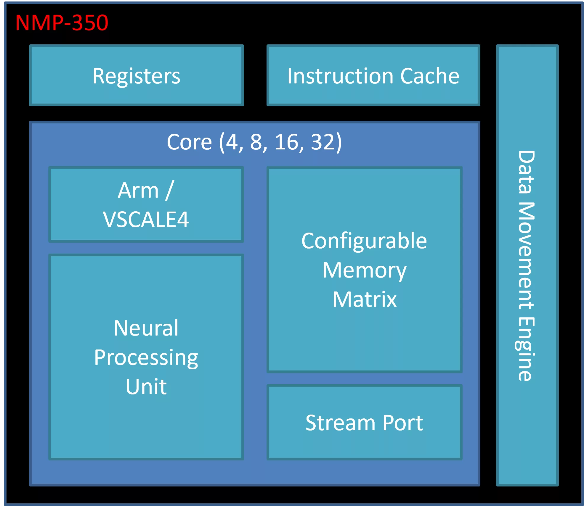 - The NMP-350 extends the low power leadership of the NeuroMosAIc Processor family delivering 60% higher performance efficiency while maintaining concurrent multimodal inferencing matched to modern sensors and embedded systems. Architecture changes include doubling the core count per tile enabling up to 1 TOPS while improving utilization and lowering area by 25%.