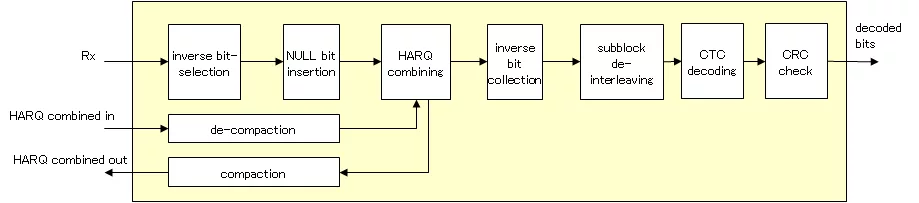• Covers: Inverse rate matching, HARQ combining, CTC decoding, CRC check