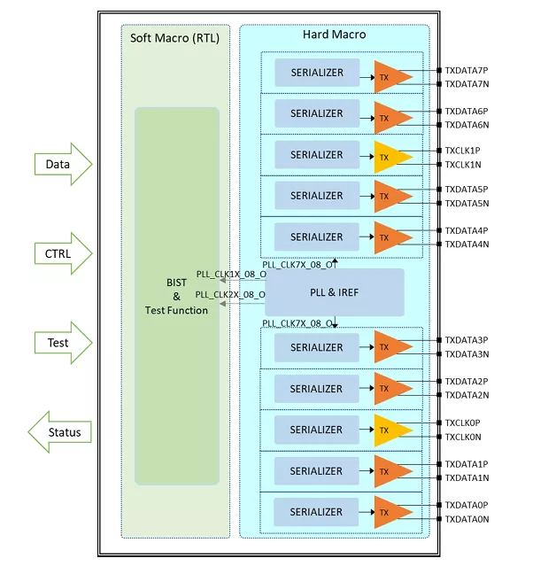 LVDS 160MHz 8-Lane PHY TX IP on TSMC 16FFC
