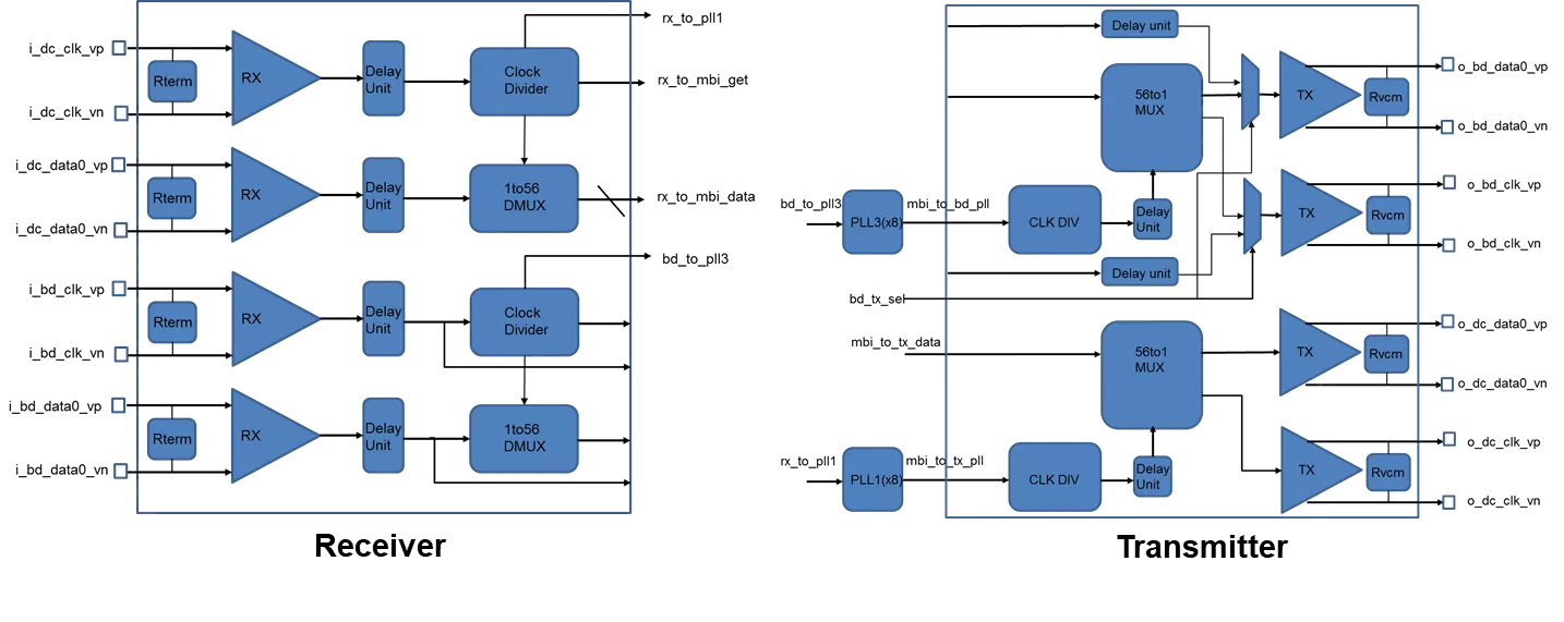 The T180BCDLVDSV1 IP is a mini-LVDS TX and RX PHY based on TSMC 180nm BCD process.