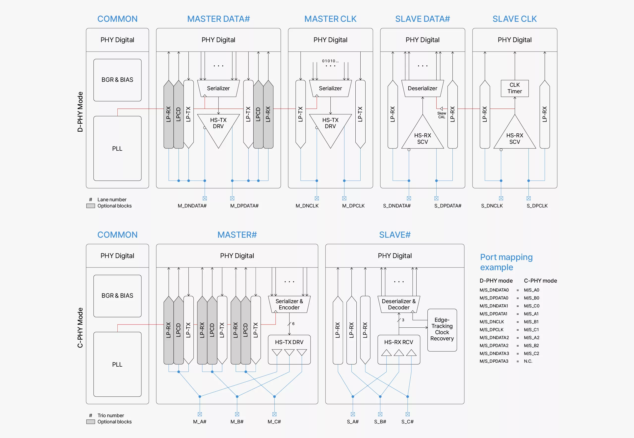 - Compliant to MIPI D-PHY v3.0, C-PHY v2.1 specification