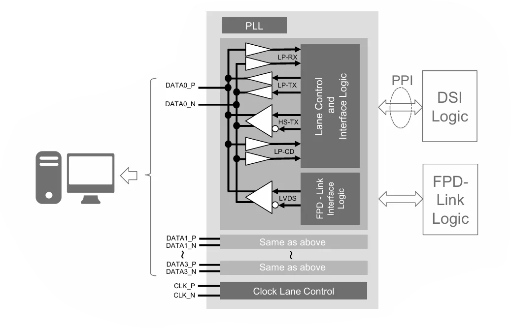 The Renesas MIPI D-PHY and FPD-Link (LVDS) combinational Transmitter is useful 4 Data Channel driver hard macro for DSI of TSMC 22nm ULP process.