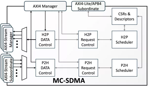 The MC-SDMA is suitable for applications requiring high-speed data transfers and efficient host memory access. Examples include networking equipment for handling packet data, multimedia systems for managing audio/video streams, storage systems for accelerating data movement, and embedded systems for optimizing resource usage in IoT or automotive applications.