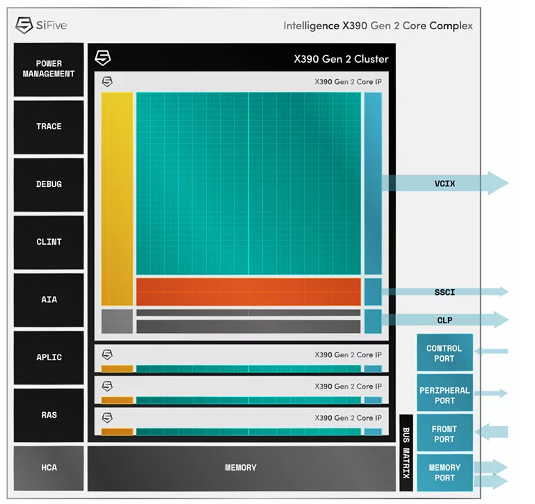 - SSCI and VCIX specialized interfaces for close coupling with customer-designed external AI accelerators or other coprocessors