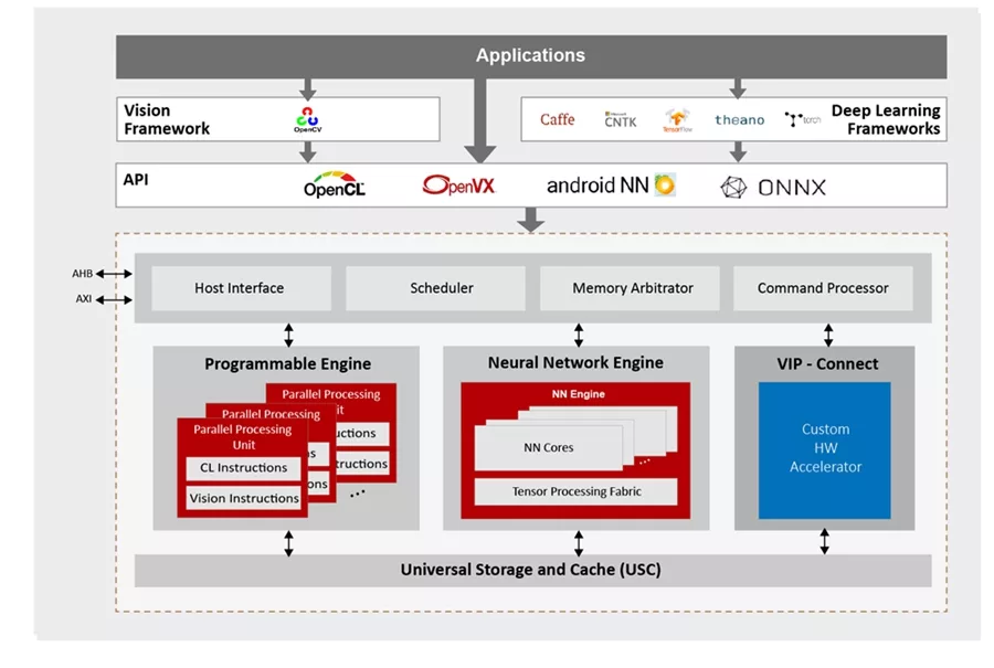 - VIP-ConnectTM: HW and SW I/F protocols to plug in customer HW accelerators and expose functionality via CL/VX custom kernels