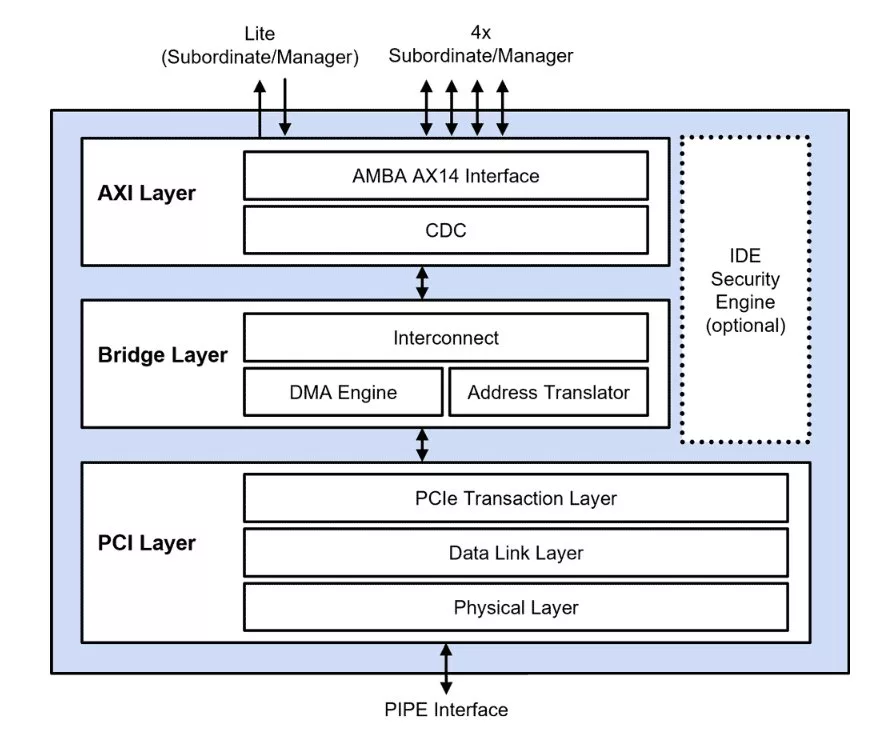 The PCI Express® (PCIe®) 7.0 Controller with AXI is a configurable and scalable design for ASIC implementations. Optimized for high-bandwidth efficiency at data rates up to 128 GT/s, the controller delivers maximum performance for Data Center, Edge, AI/ML and HPC applications. It is backward compatible to the PCIe 6.0 and 5.0, as well as version 6.2.1 PHY Interface for PCI Express (PIPE) specification.