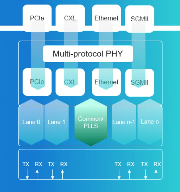 The Cadence 10G multi-protocol PHY was architected to address this exact challenge. Designed to scale across multiple process nodes, it consolidates PCI Express (PCIe), USB, DisplayPort, Ethernet, and other interfaces into a single, compact, silicon-efficient block. What sets it apart is simultaneous multi-protocol support, which enables multiple data paths without duplicating hardware, requiring extra board connectors, or paying the area and power penalty of separate IP blocks.