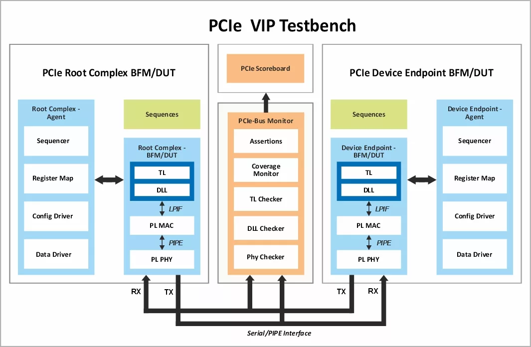 - Verification IP configurable as PCI express Root Complex, Device Endpoint or PCIe Switch.