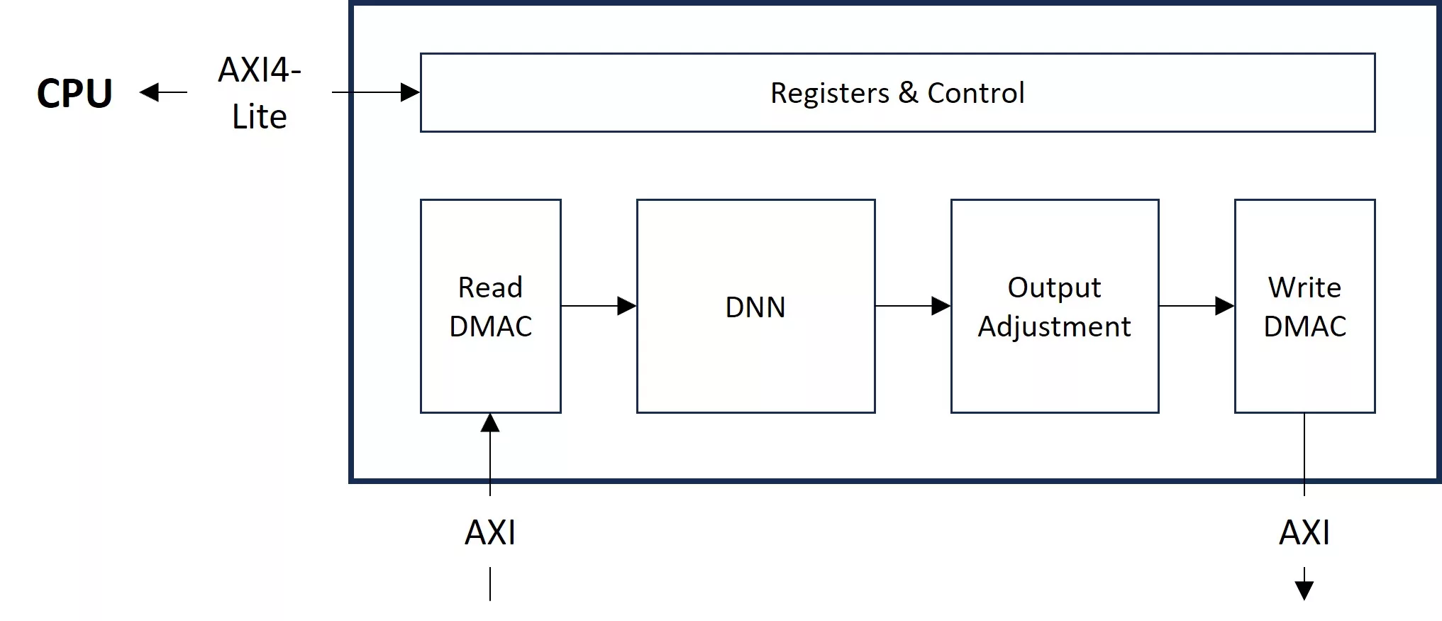 - One AXI4 Lite port with 32-bit address and 32-bit data for the host to communicate with the IP