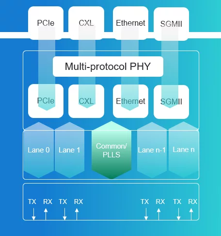 The PHY IP for PCI Express® (PCIe®) 5.0 is a high-performance SerDes configurable to operate from 1.25Gbps to 32Gbps in NRZ mode.