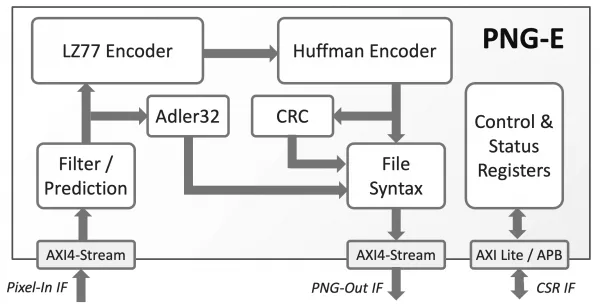 The PNG-E core implements a lossless image compression engine compliant with the Portable Network Graphics (PNG) file format spec…
