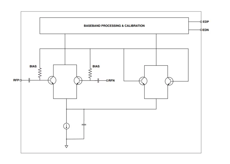 The WEA7186PD55S is a differential ended envelope detector. It has a differential input and is capable of detecting signals over a wide dynamic range, from –16dBm to 8dBm. The baseband part is used as an amplification stage for the RF part. The WEA7186PD55S is well suited for power control in microwave Backhaul,5G and SatCom. The WEA7186PD55S has been implemented in ST BiCMOS55 process.