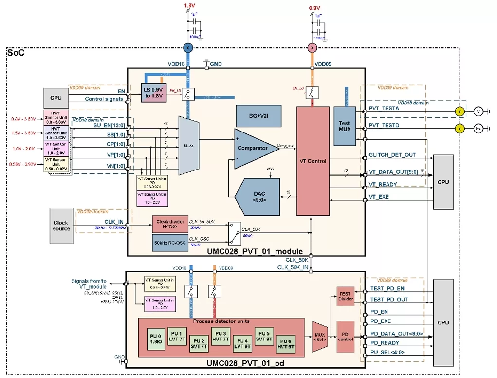 028UMC_PVT_01 IP library is a unique solution intended to continuously monitor IC status at several on-die locations.