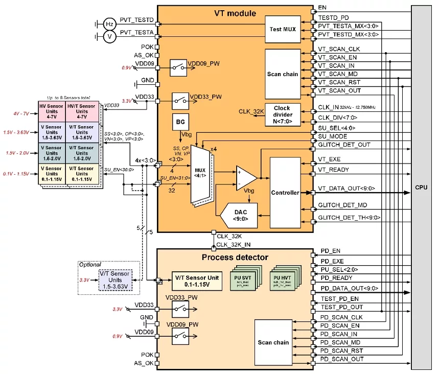 Process/Voltage/Temperature Sensor (Supply voltage 3.3V/0.9V)