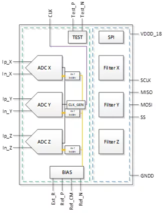 • The 3-channel ADC offers radiation hardness and a low power consumption with reasonable conversion rate and accuracy.