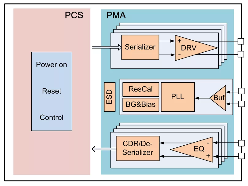 - BIST (PRBS-7, PRBS-15, PRBS-23, PRBS-31) generator and checker