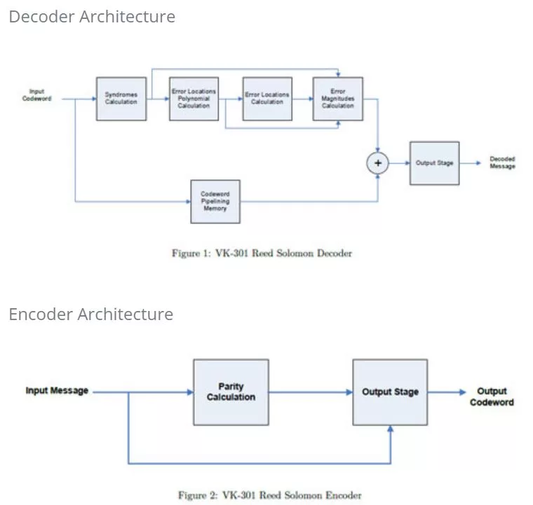 The Implementation of VK-301 Reed Solomon IP Core targets very low latency, high speed, and low gate count with a simple interface for easy integration on SoC applications.