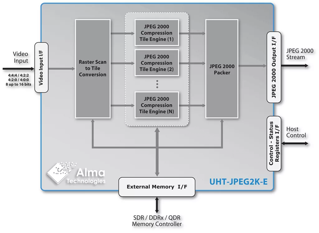 Scalable Ultra-High Throughput Lossy and Lossless JPEG 2000 Encoder is a Image Conversion IP core from Alma Technologies listed on Semi IP Hub.