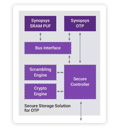 The Synopsys Secure Storage Solution for OTP is an add-on to Synopsys One-Time Programmable (OTP) Non-Volatile Memory (NVM) IP.