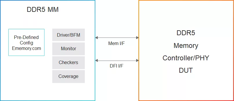- Support of all DDR5 JEDEC Spec defined Commands: MRW, MRR, ACT, WrP, WrPA, Wr, WrA, Rd, RdA, VrefCA, VrefCS, RFM, REF, SRE, SREF, PDE, PDX, MPC, and PRE