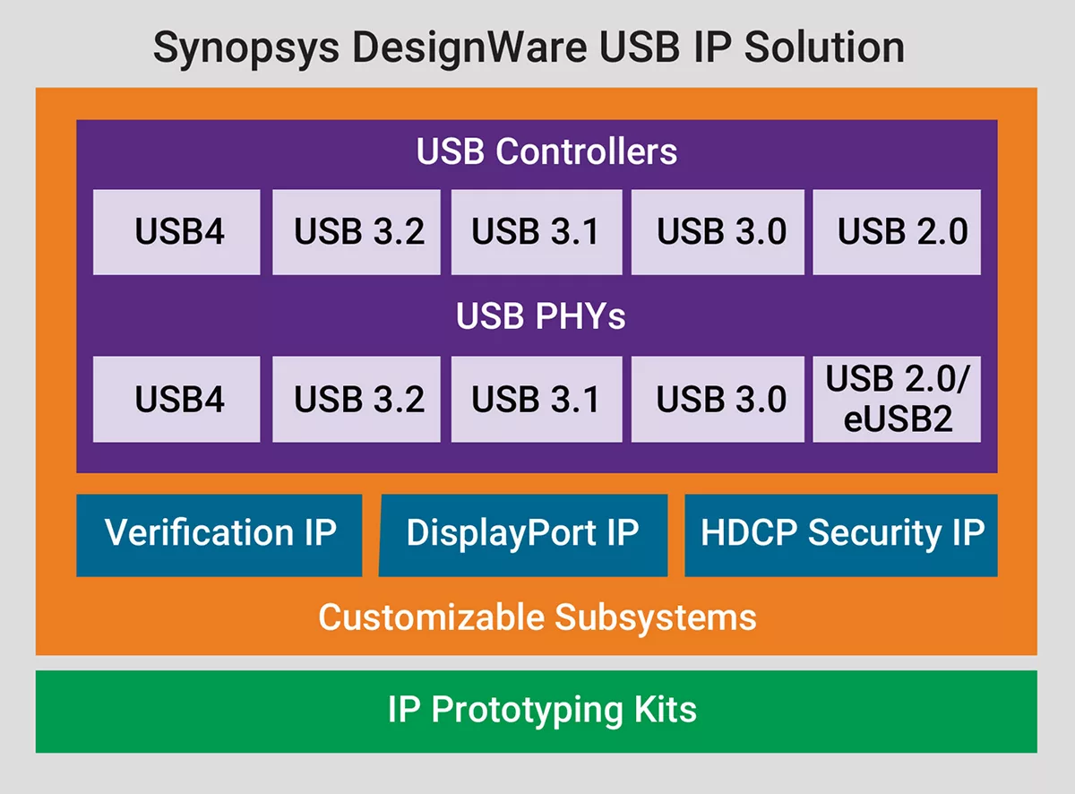 The USB IP is the most certified IP solution in the industry. With over 3,000 design wins, the vendor's complete USB IP solution--consisting of controllers, PHYs, verification IP, drivers, and IP prototypes--enables designers to lower integration risk and speed time-to-market.