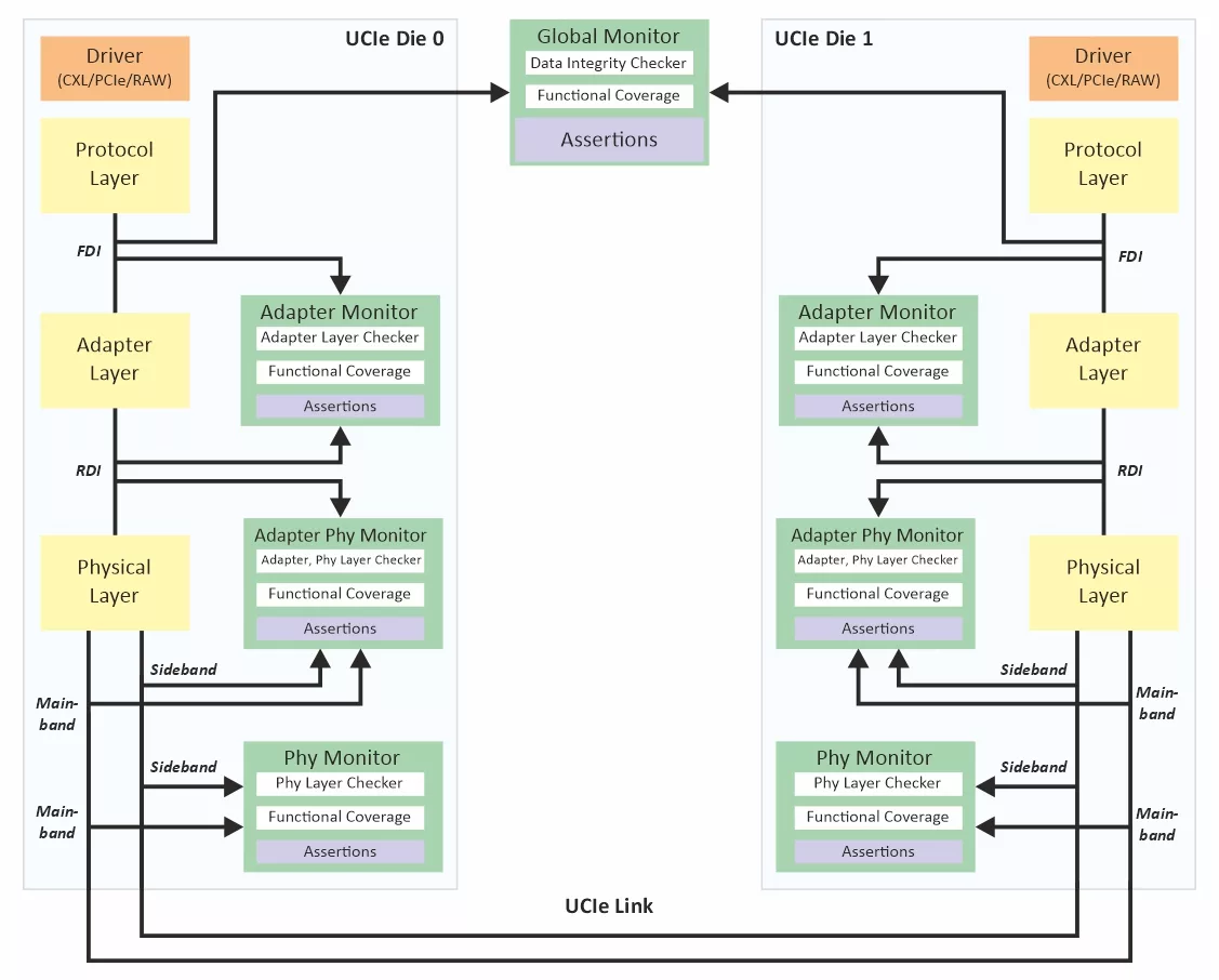 The UCIe Verification IP provides an effective & efficient way to verify the UCIe components of an IP or SoC. The VIP is fully compliant with UCIe Specification version 1.1. The VIP is light weighted with easy plug-andplay components so that there is no hit on the design